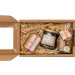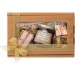 - Kakovostna dekorativna kartonska škatla v natur barvi s prozornim pokrovom, podlaga iz lesne slame, dekorativna pentlja