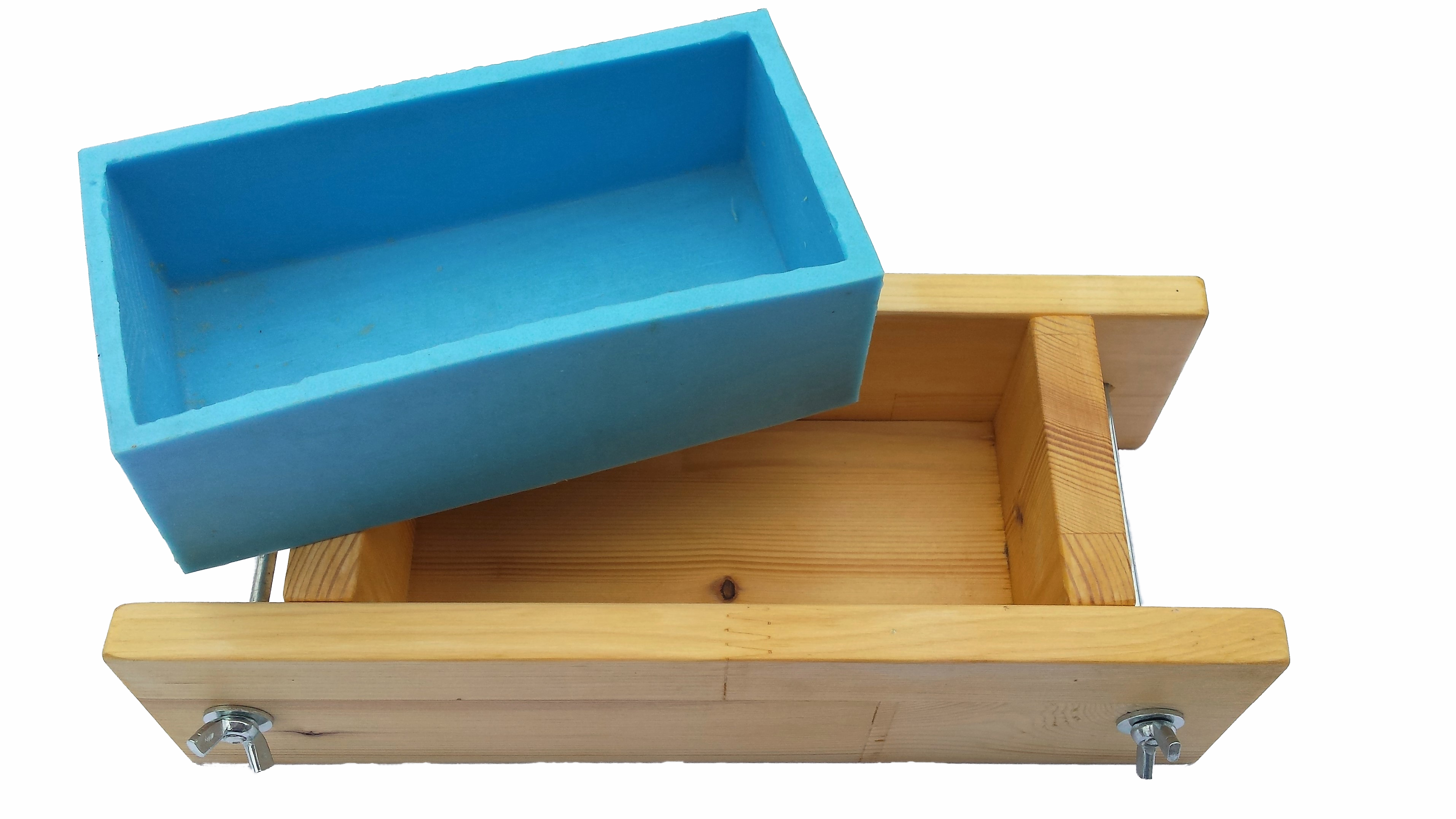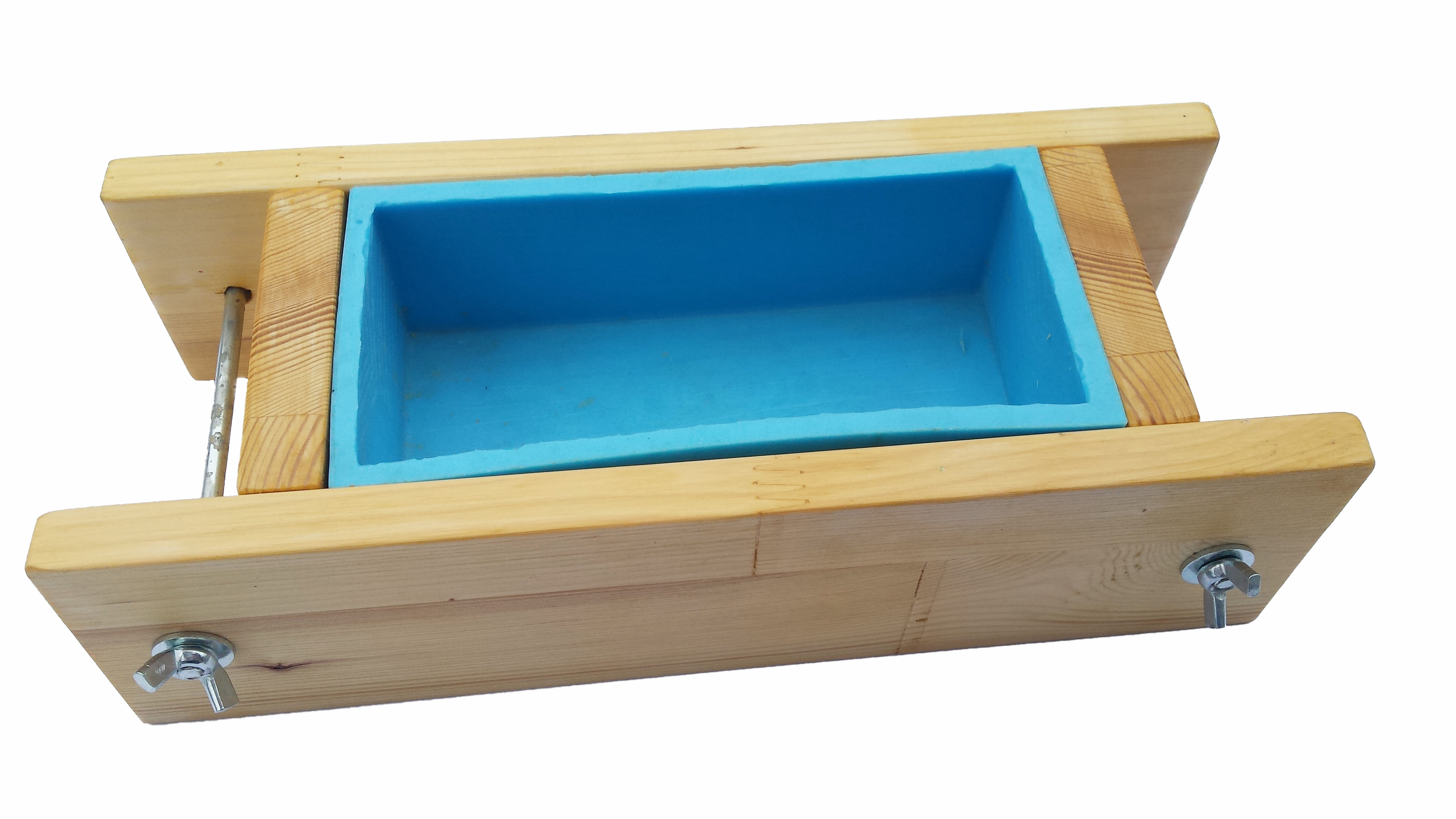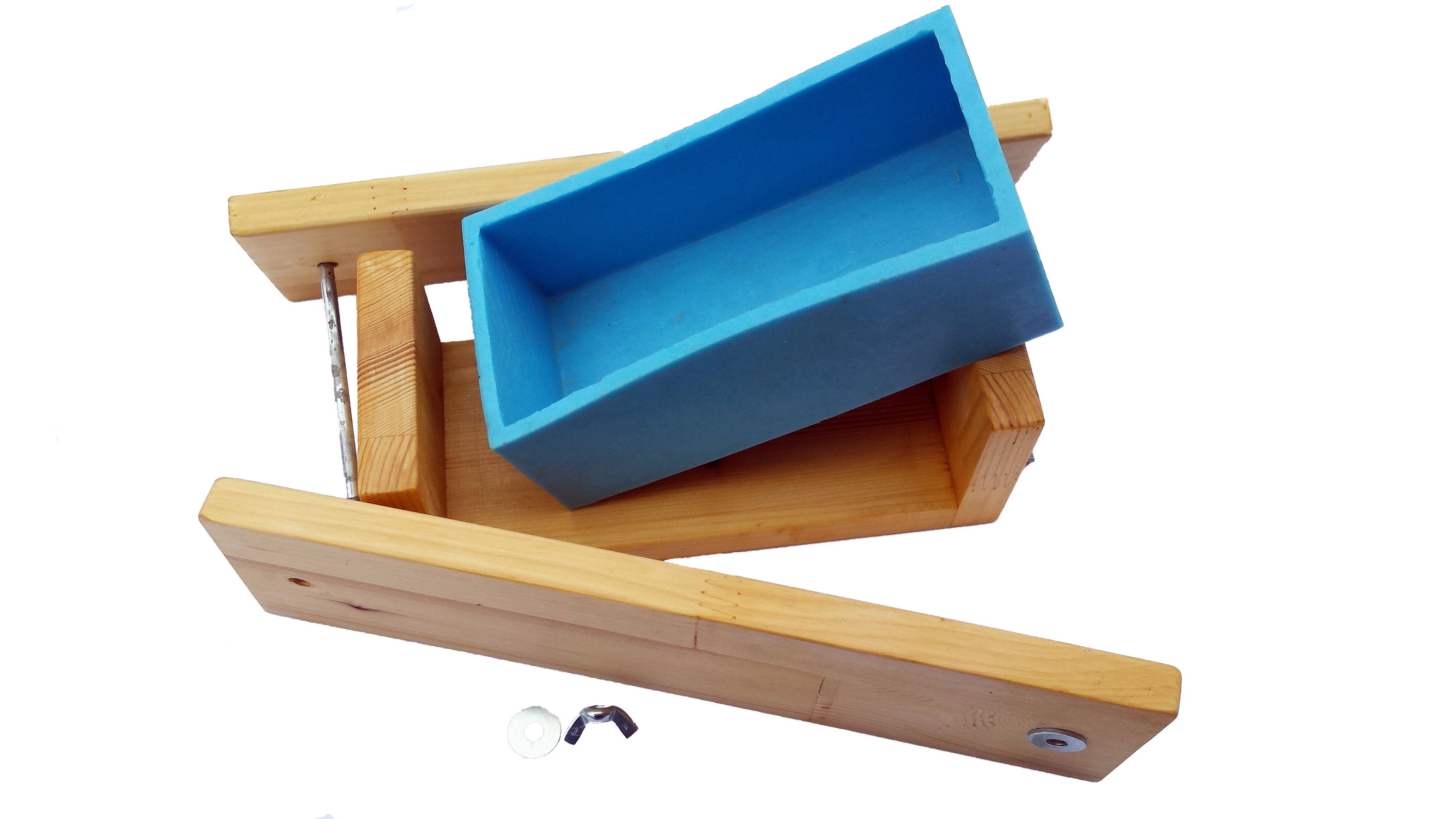 Ročno izdelan kalup za vlivanje milne mase. Kalup je sestavljen iz lesenega okvirja in kalupa iz kavčuka, kamor se vlije milna osnova. Cena lesenega dela znaša 20€, cena kalupa iz kavčuka 30€ z DDV. Kalup se izdela po naročilu.